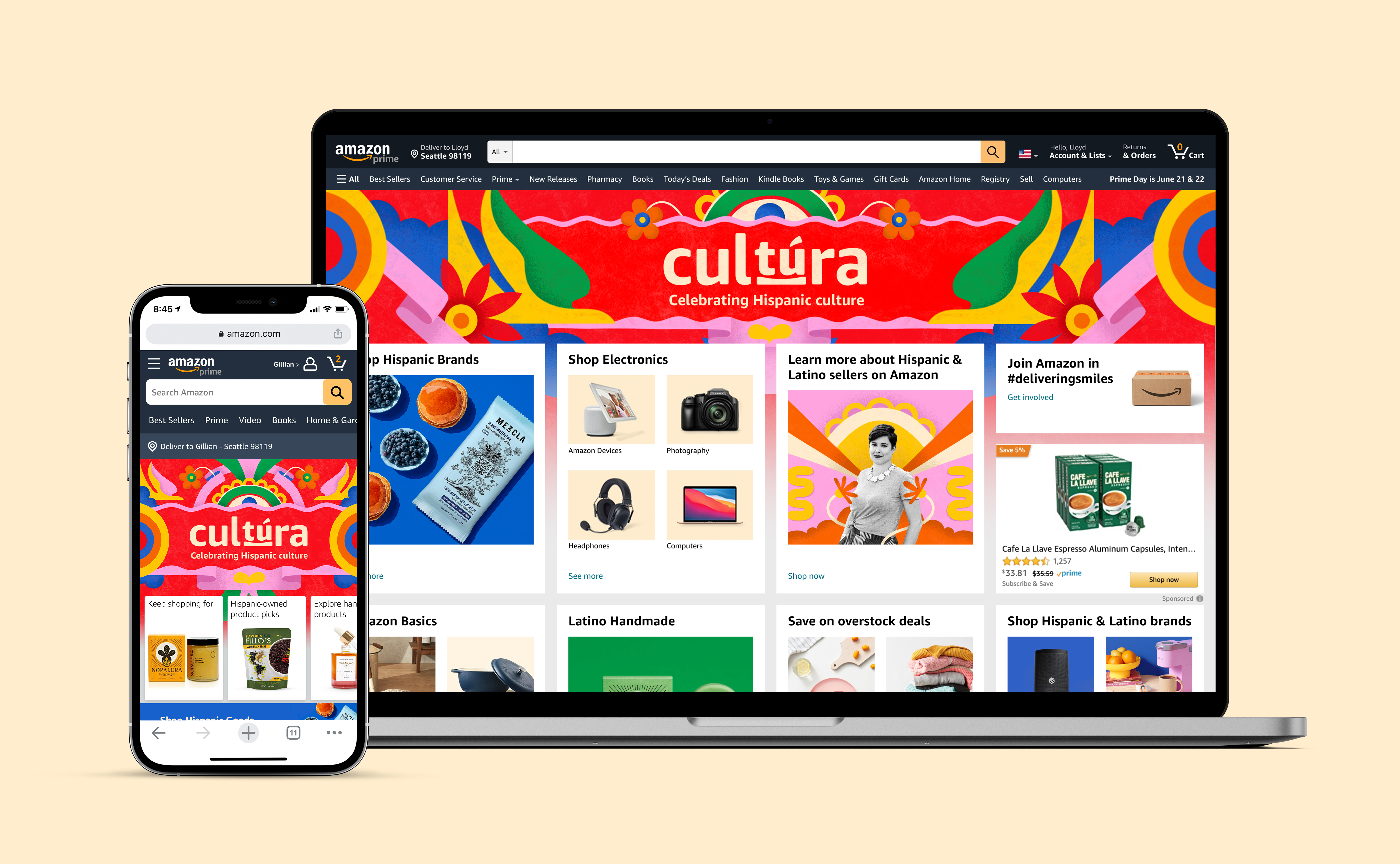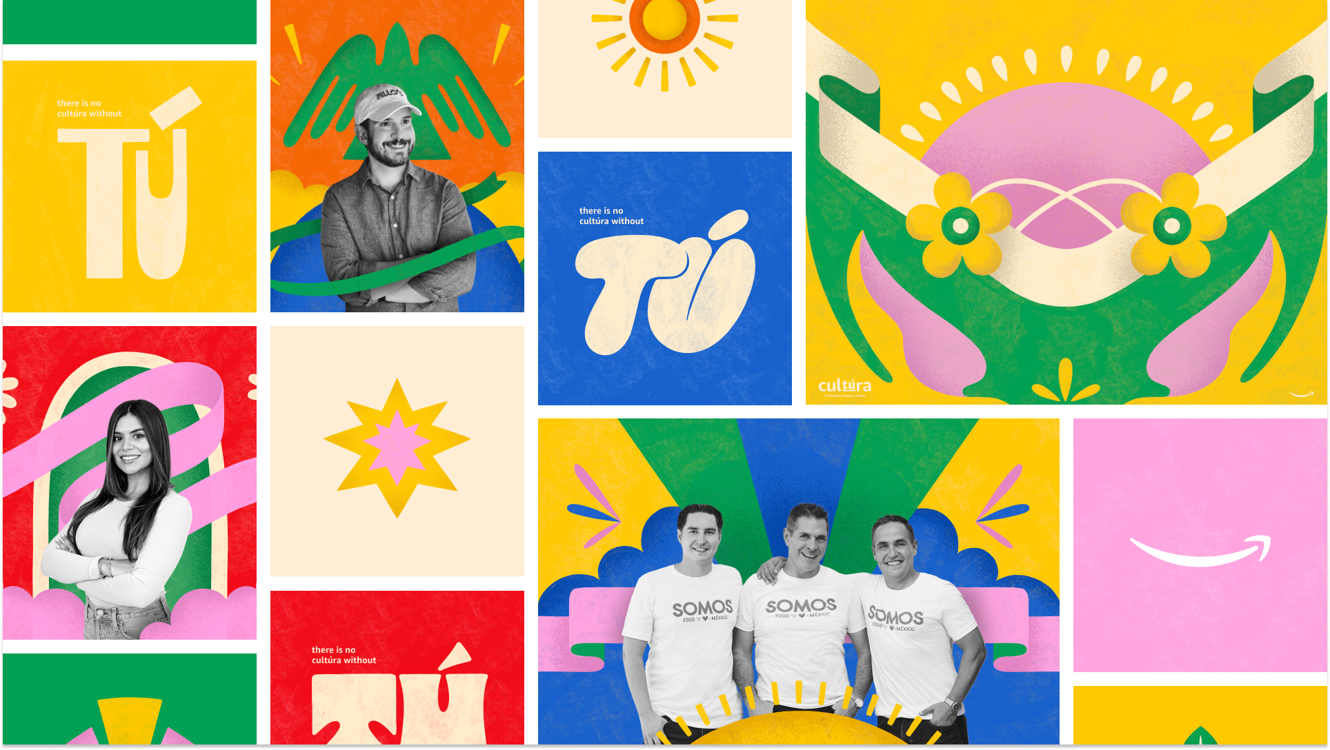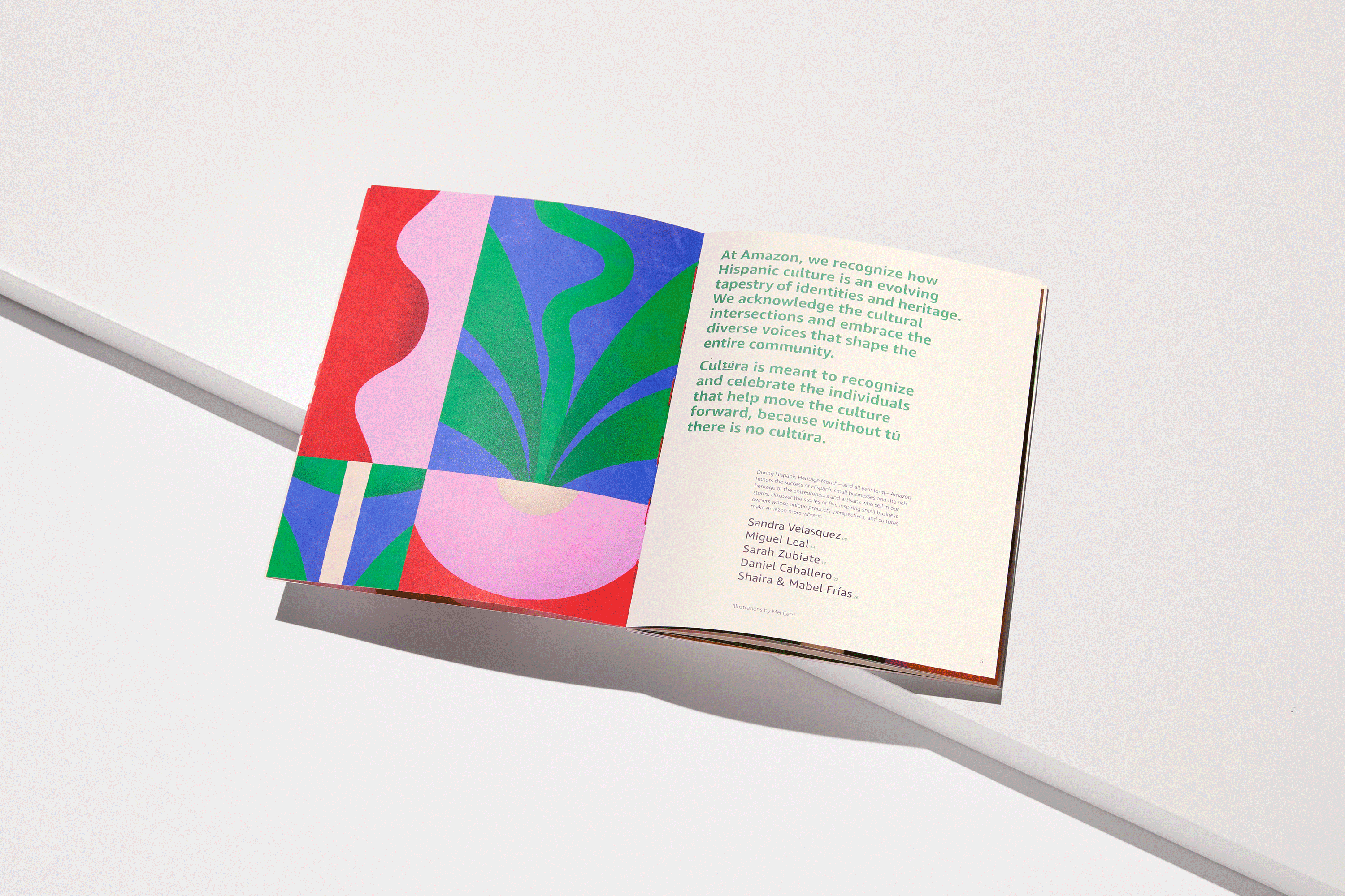 CulTÚra, the cornerstone of the Hispanic Heritage Month campaign at Amazon, means to shift the annual celebration from a moment in time to a movement by focusing on the stories and unique backgrounds of Hispanic entrepreneurs who sell on Amazon. Bright colors, vibrant icons, in-depth interviews, and bold portrait illustrations pay tribute to these individuals who are moving Hispanic culture forward and helping to make Amazon a better company. As an extension of the campaign, we created our first zine honoring the success of Hispanic-owned small businesses at Amazon. It features interviews with CEOs alongside art and typography by Brazilian illustrator, Mel Cerri.